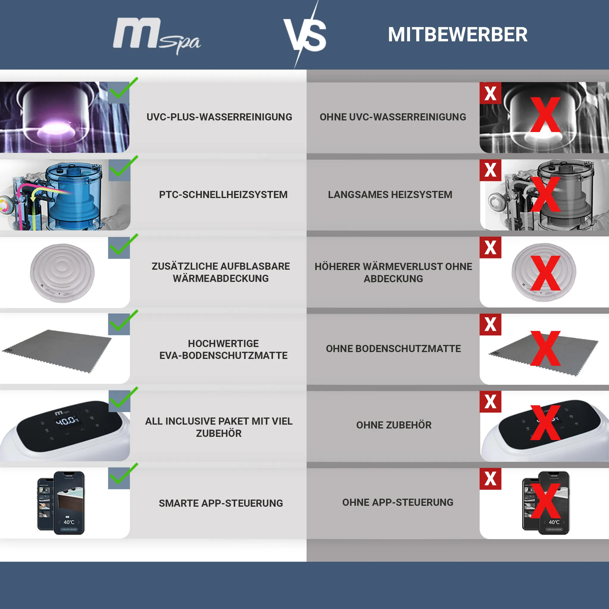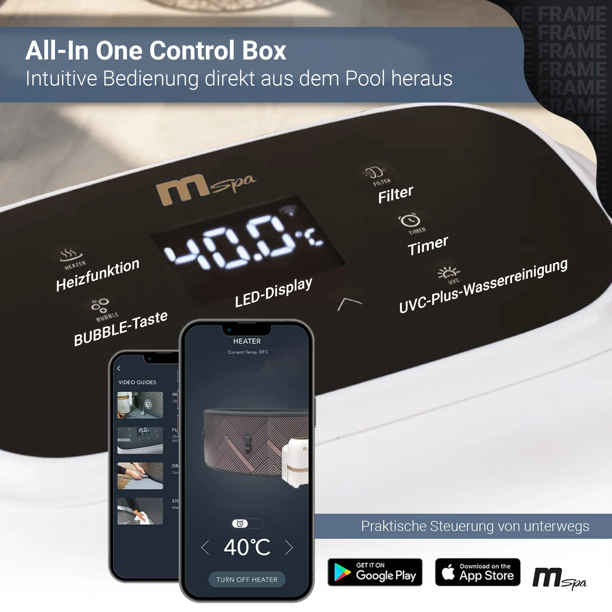 • Smarte Steuerung per App Komfortable Bedienung unterwegs mit der MSpa Link App und intuitivem LED-Display am Gerät.
