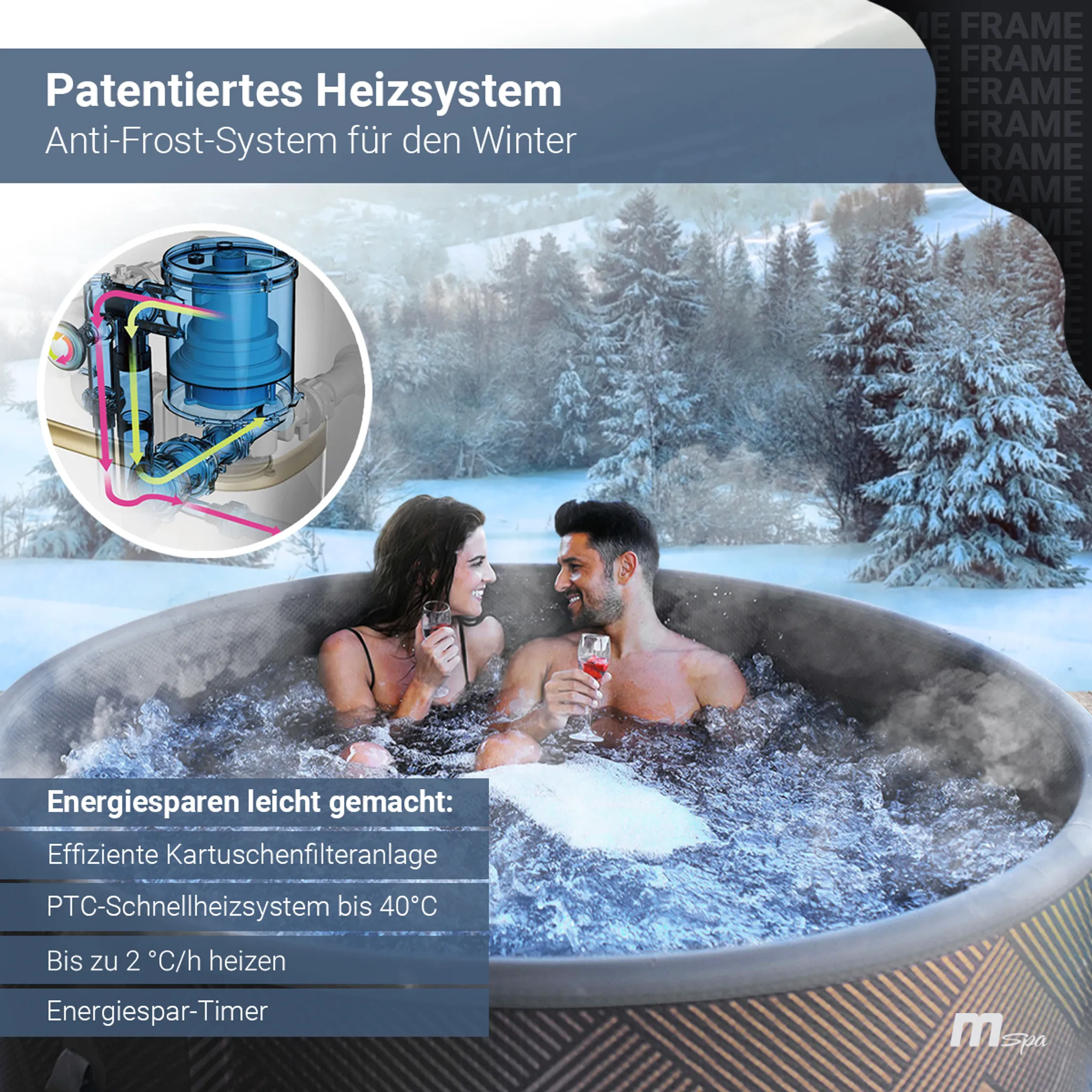 Miweba MSpa Whirlpool Frame Mono | Aufblasbar – Indoor & Outdoor Pool – Ozongenerator – UVC+ Filter – Anti-Frost-System – 6 Personen – App Steuerung