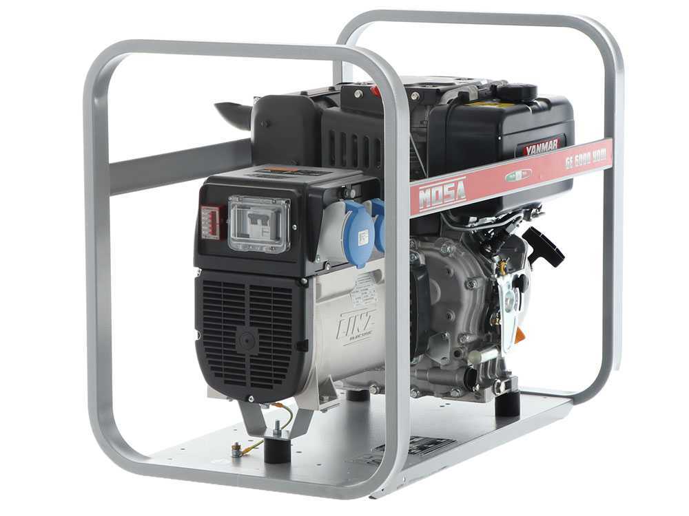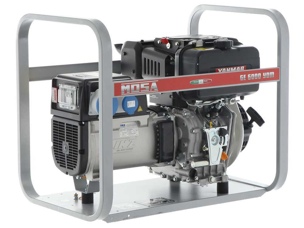 Der Diesel-Stromerzeuger GE 6000 YDM kann eine maximale Leistung von 5,1 kW erzeugen. Dieser Generator wird von der italienischen Firma MOSA hergestellt und verfügt über hochwertige Komponenten wie einen italienischen Drehstromgenerator der Marke Linz und einen Euro 5 Yanmar-Dieselmotor.
