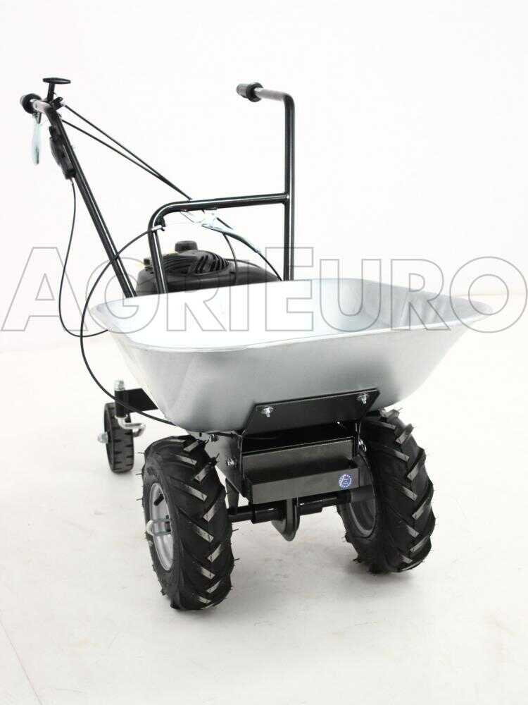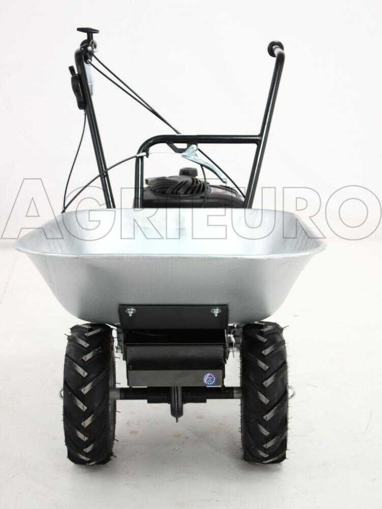 Diese Maschine kann Ihnen bei der Arbeit in Gärten helfen. Sie verfügt über eine Wanne aus verzinktem Stahl mit einer Ladekapazität von 100 kg. Die Wanne ist einfach kippbar.