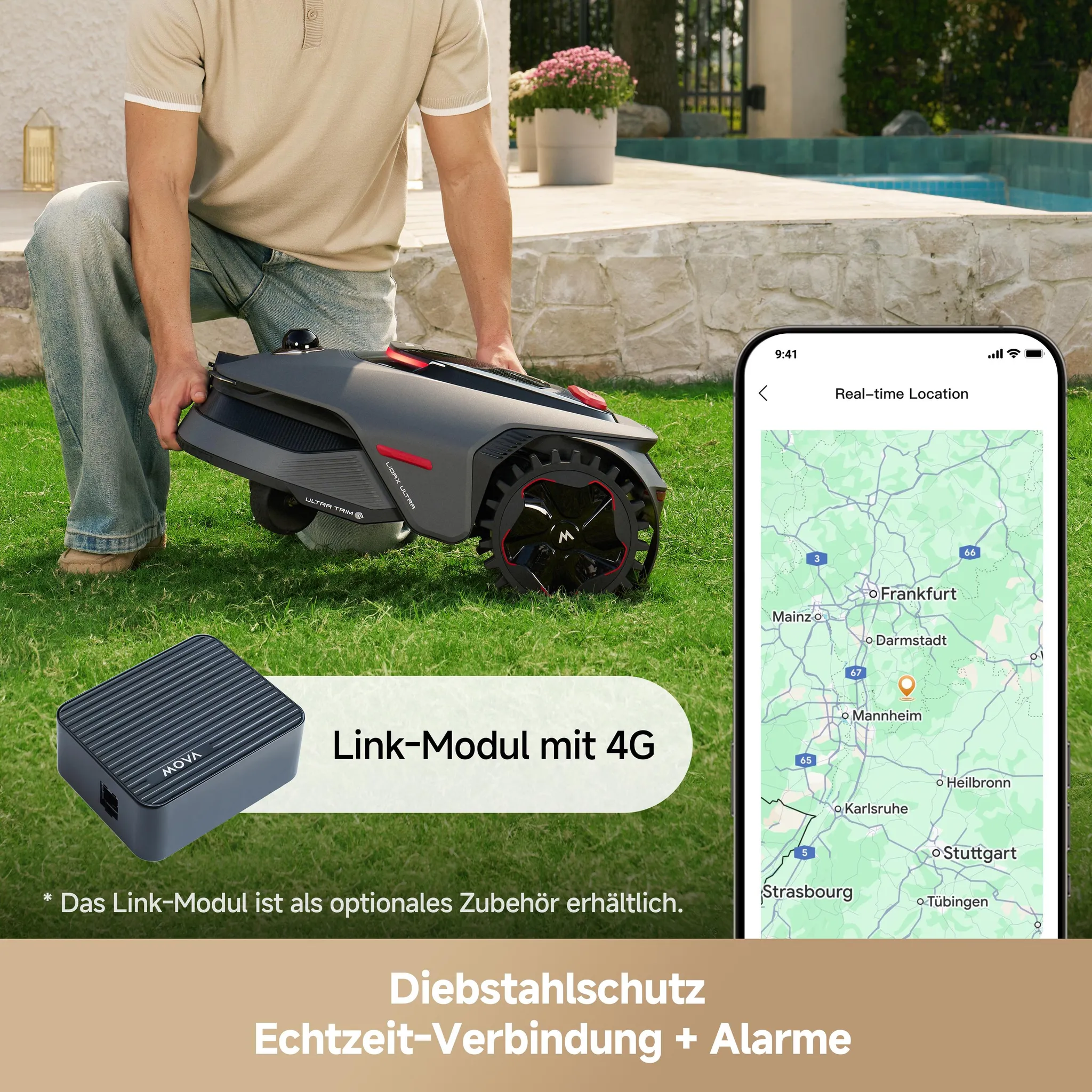Fortschrittliche KI erkennt über 300 Hindernisse – von Gartenmöbeln bis zu kleinen Objekten – und weicht ihnen sicher aus, für mehr Schutz von Familie und Haustieren.
