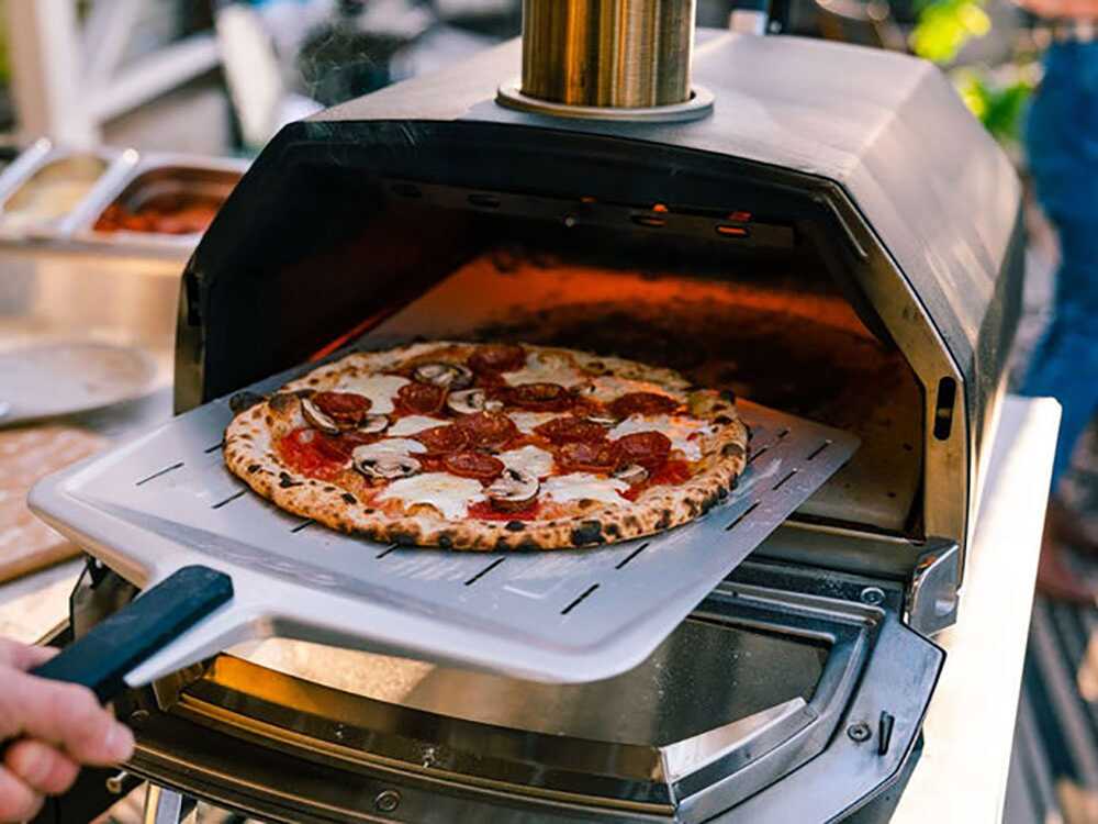 Mit diesem Ofen von OONI können Sie eine Pizza zubereiten, wie sie in der Pizzeria im Holzbackofen auf Stein gebacken wird.