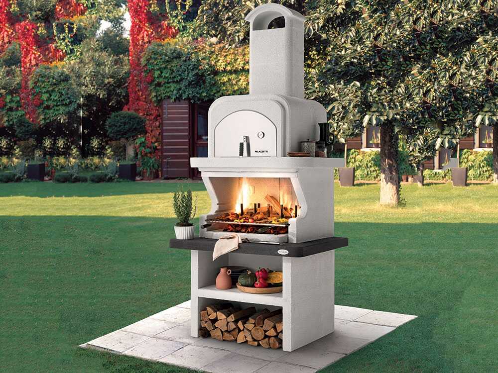 Kombi-Grillkamin mit Holzbackofen aus Betonstein Palazzetti Balos