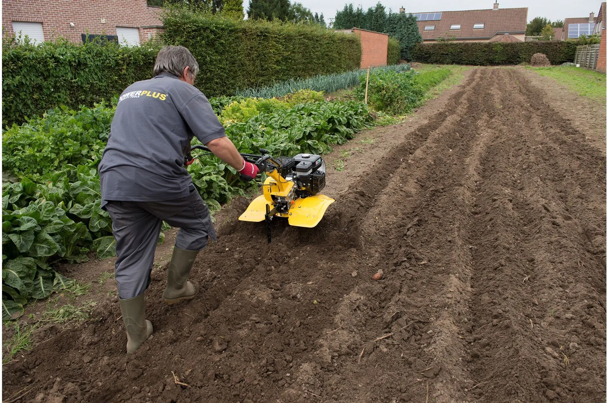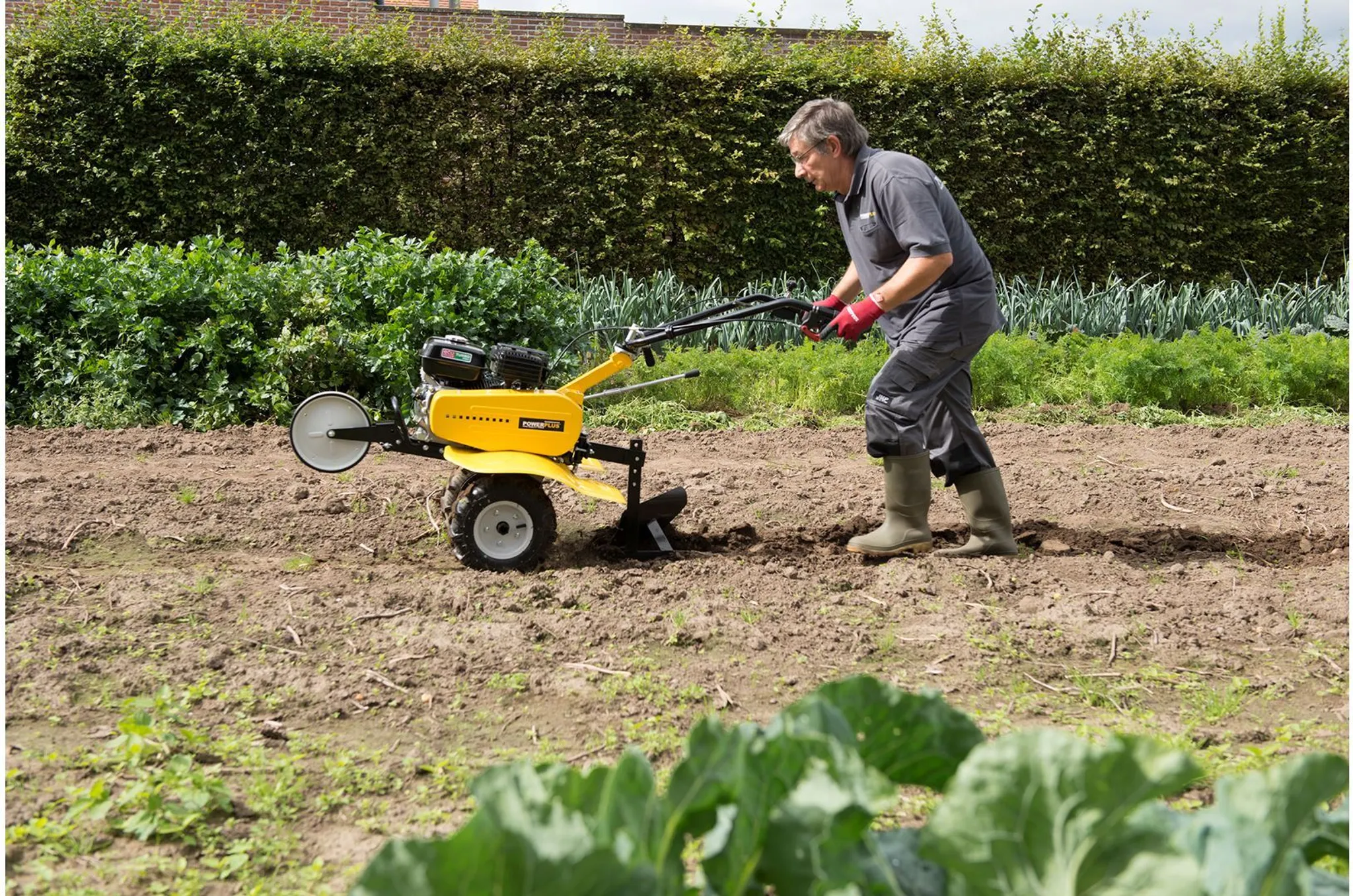 Diese 2 in 1-Gartenfräse ist gleichzeitig auch ein Pflug. Indem man den Boden zuerst pflügt und hartnäckiges Unkraut und Pflanzenreste erst einmal tief und gründlich wendet und löst, können Sie anschließend viel einfacher und effiziënter fräsen. Die Arbeitsbreite dieser Gartenfräse/dieses Pflugs ist beeindruckend: er kann bis zu 105 cm breit fräsen, sodass Sie die Arbeit schnell erledigt haben.