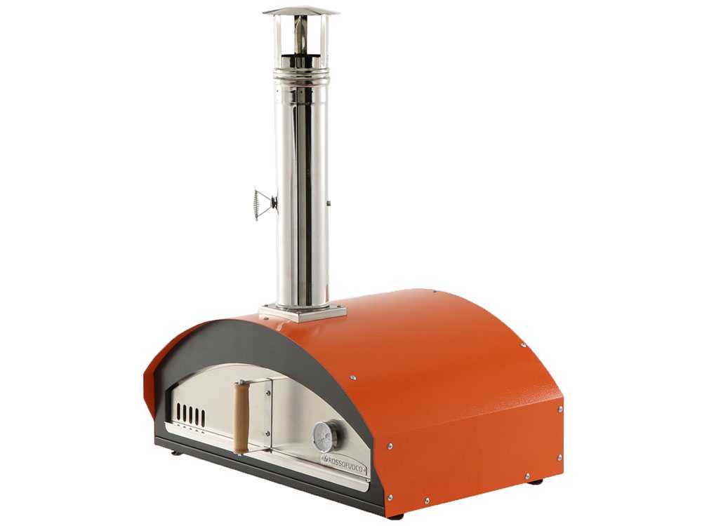 Das orangefarbene Design des Holzbackofens macht ihn zu einem auffälligen Objekt, das sich perfekt in jede Umgebung im Freien einfügt. Dank der Fähigkeit, die Temperatur zu regulieren und seiner großen Garraumgröße ist dieser Ofen sowohl für den privaten als auch für den professionellen Gebrauch geeignet.