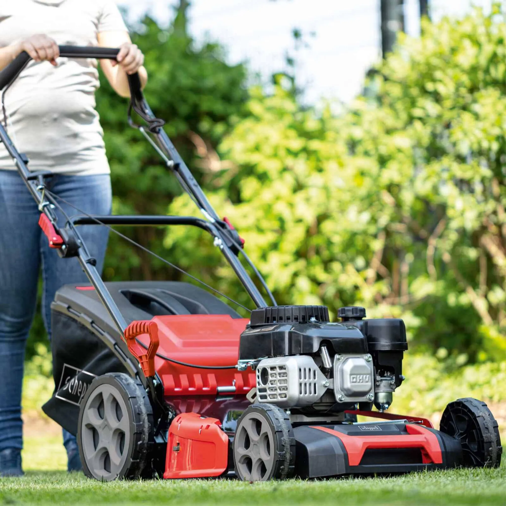 Scheppach Benzin Rasenmäher MS175-51 – 5,4 PS | 51cm Schnittbreite | Radantrieb | inkl. Motoröl