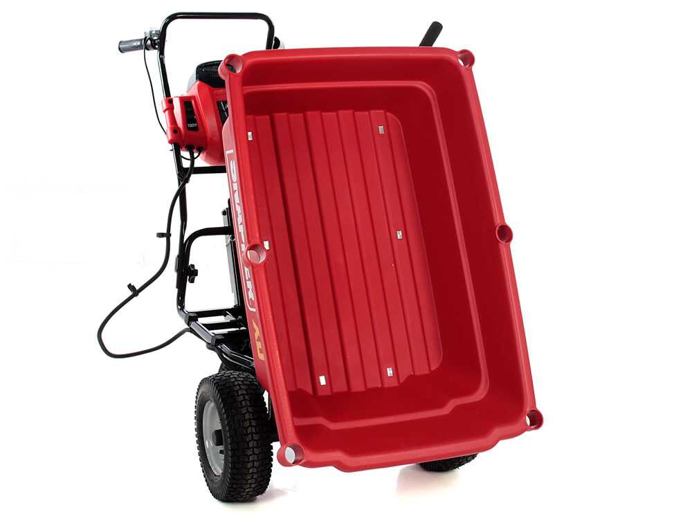 Diese Maschine kann Ihnen bei der Arbeit in Gärten helfen. Sie verfügt über eine Wanne aus Kunststoff mit einer Ladekapazität von 100 kg/106 L. Die Wanne hat ein manuelles von Gas Stoßdämpfer unterstütztes Umkippen.