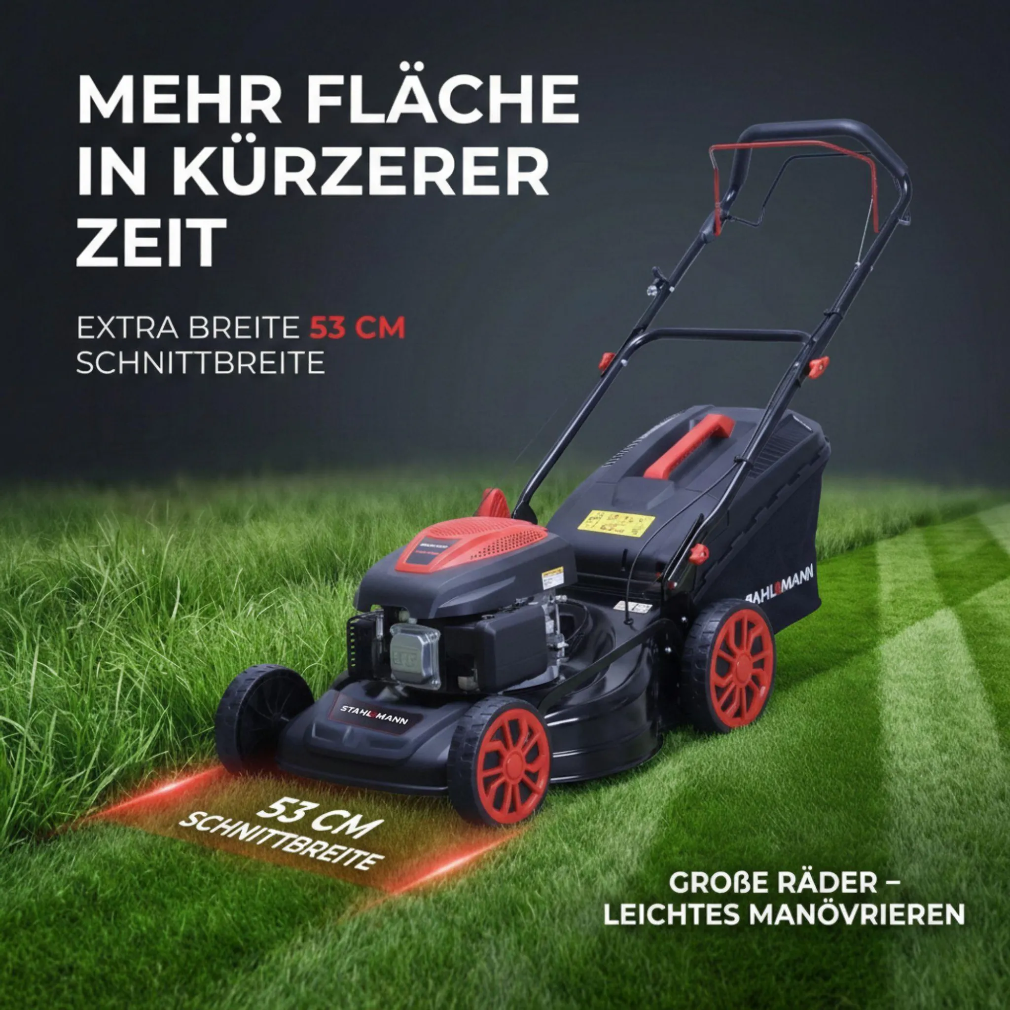 STAHLMANN Rasenmäher Benzin mit Antrieb BR532 – 7,0PS (5,1kW) 224ccm mit Antrieb, 53cm Schnittbreite, Mulchen, Schnitthöhenverstellung