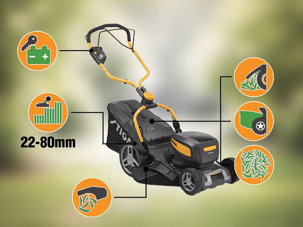 • Zentrale Schnitthöhenverstellung: 6 Schnitthöhenpositionen von 22 bis 80 mm.