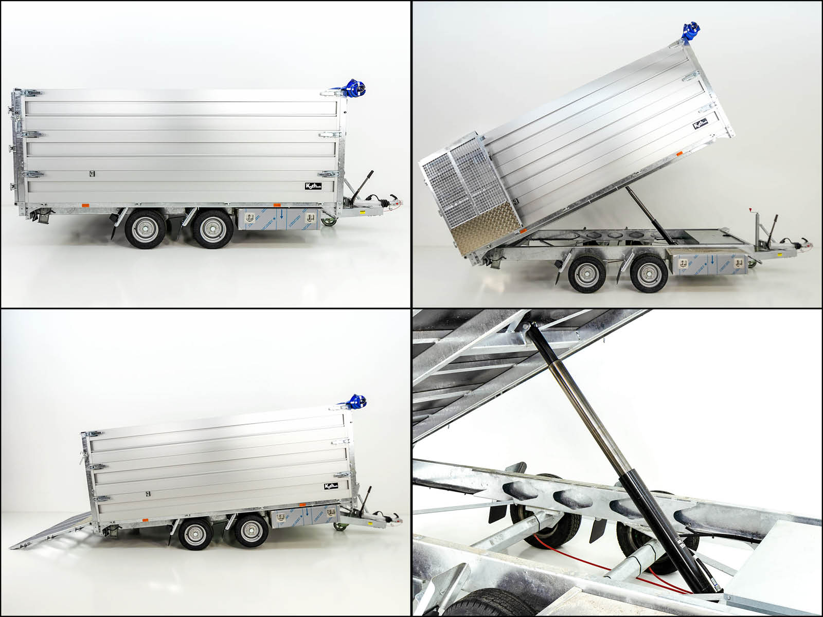 - Maschinen- und Kippanhänger mit ca. 55° Kippwinkel zum Abkippen und ca. 10° Auffahrwinkel
