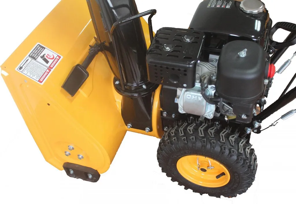 - Diese Schneeräummaschine ist mit einem 4-Takt-Benzinmotor mit 4,1 Kilowatt Leistung und elektrischem und manuellem Start ausgestattet. Zum elektrischen Starten die Schneefräse an eine 230V-Steckdose anschließen, starten und dann die Schneefräse abklemmen.