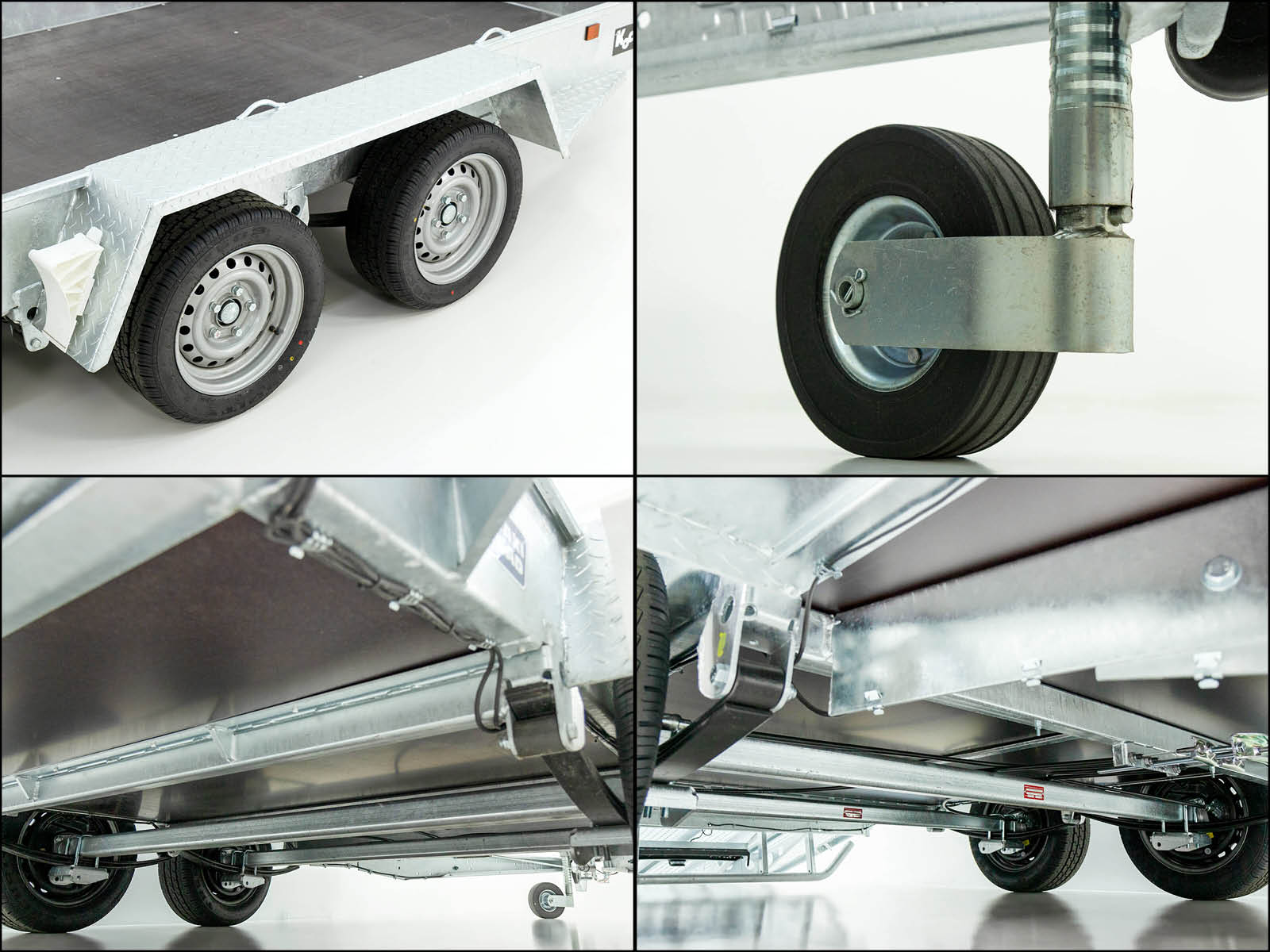 | Besonderheiten | Gitterrohrrahmen Stahl, verzinkt; Stahlbordwände, verzinkt; Aluriffelblech Kotflügel, begehbar; Bieberschwanz Heck, niedriger Auffahrwinkel; Baggerlöffelablage; 4 Plattenanker im Ladeboden versenkt; 8 Verzurrösen auf der Bordwand |