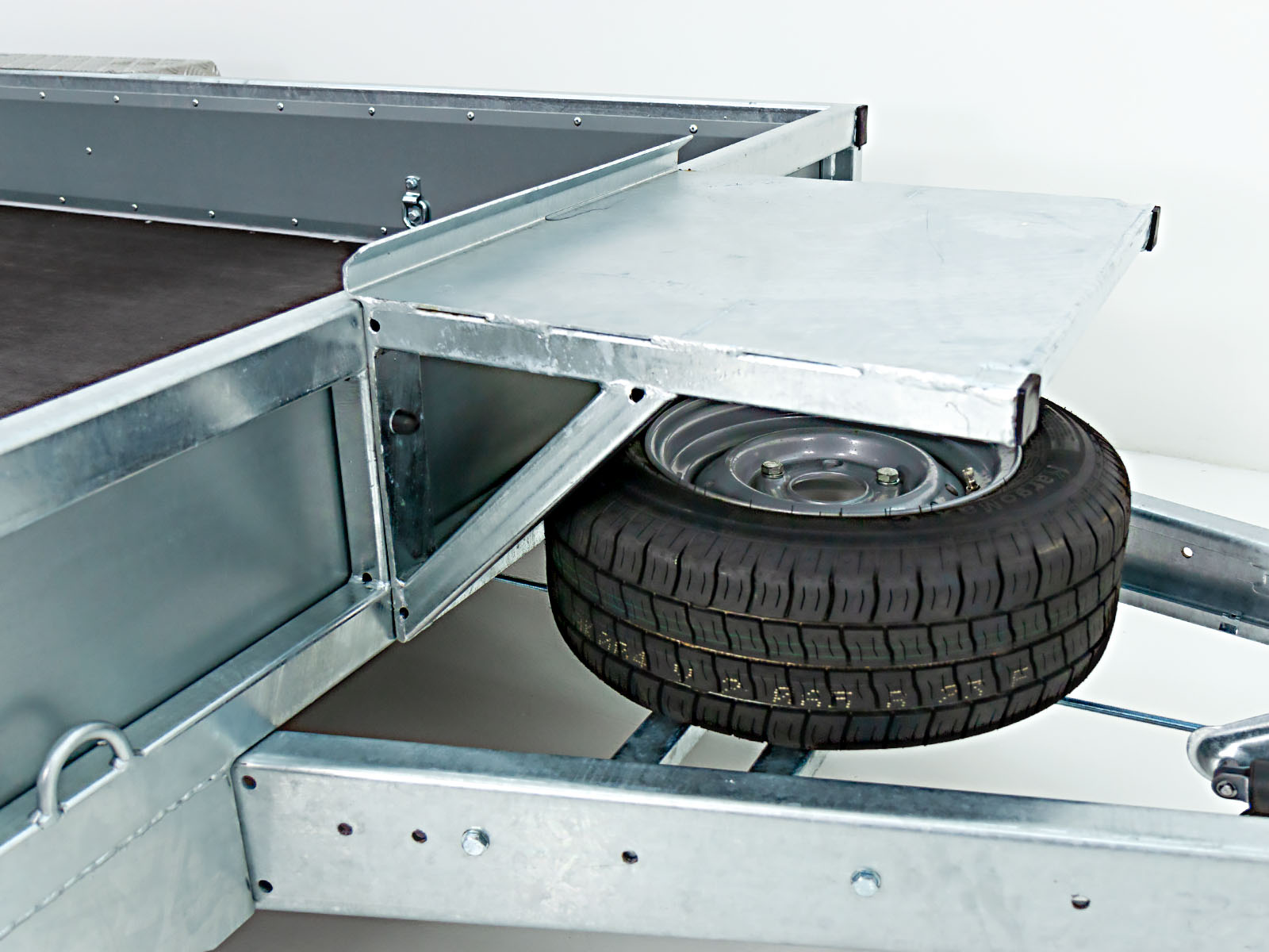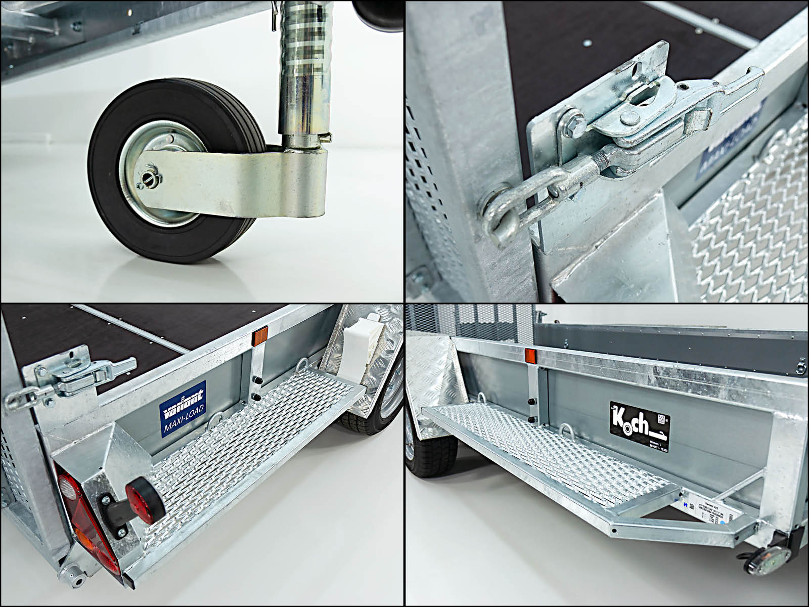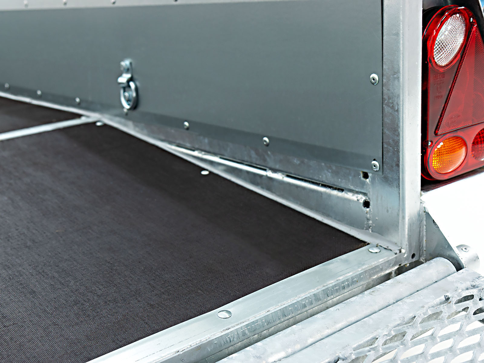 BesonderheitenGitterrohrrahmen, verzinkt; Stahlbordwände, verzinkt; Aluriffelblech Kotflügel, begehbar; Trittstufen seitlich integriert; Beavertail Heck (niedriger Auffahrwinkel); Baggerlöffelablage; verschiebbare Einzelrampen; 10 Verzurrösen außen integriert, 8 Verzurrösen seitlich; Fahrzeugpapiere inklusive