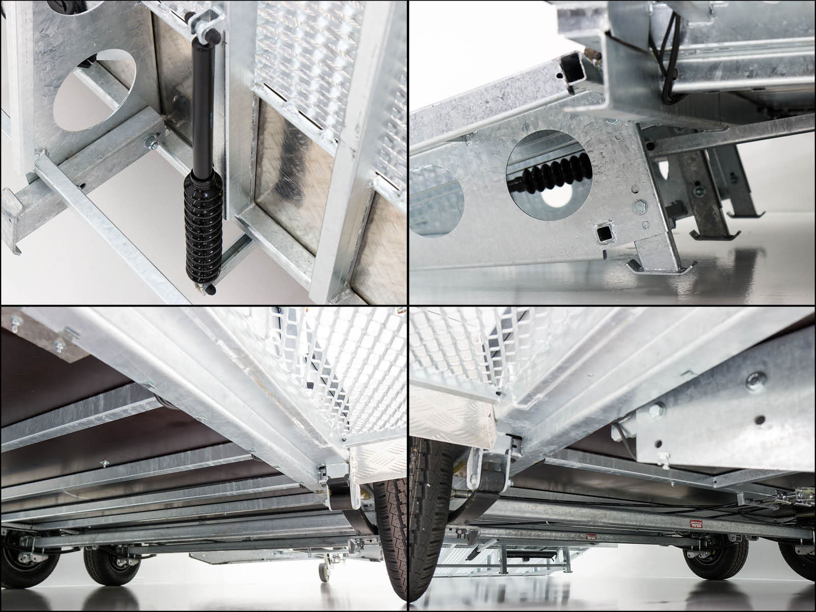 | Besonderheiten | Gitterrohrrahmen, verzinkt; Stahlbordwände, verzinkt; Aluriffelblech Kotflügel, begehbar; Trittstufen seitlich integriert; Baggerlöffelablage; Auffahrrampe, verschiebbar; 10 Verzurrösen außen integriert, 8 Verzurrösen seitlich; Fahrzeugpapiere inklusive |