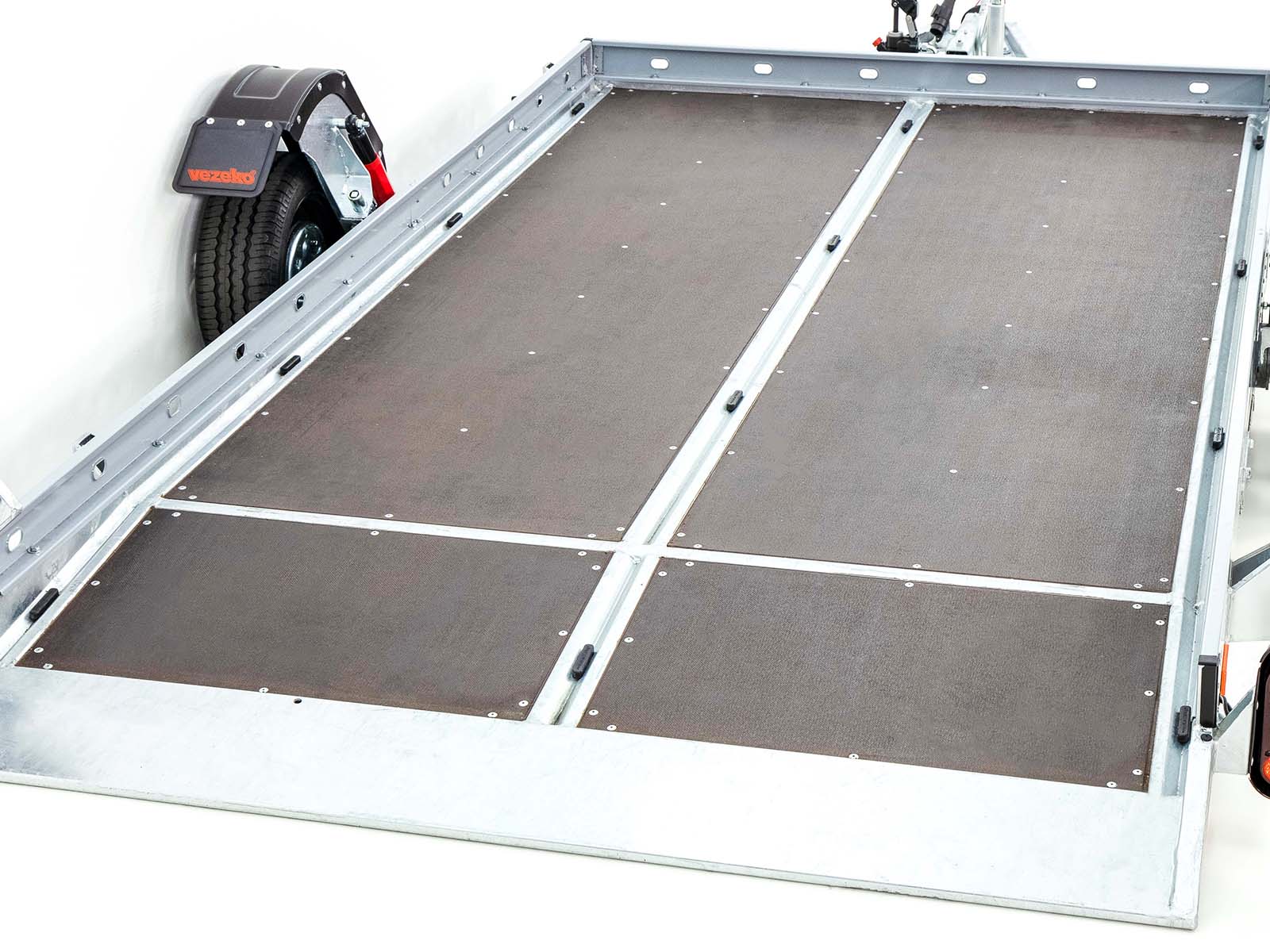 Produktinformationen zum „Vezeko Absenkanhänger 180×347 cm 1,5 t | Lochblech Seitenwände“: