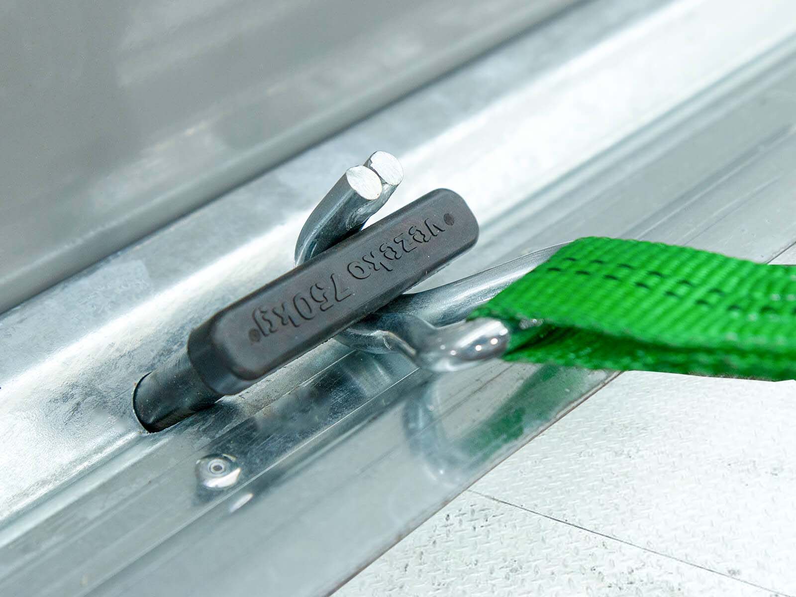 – Hohe, gelochte Rampen (ca. 170 cm), verschiebbar mit Zwangsabstützung