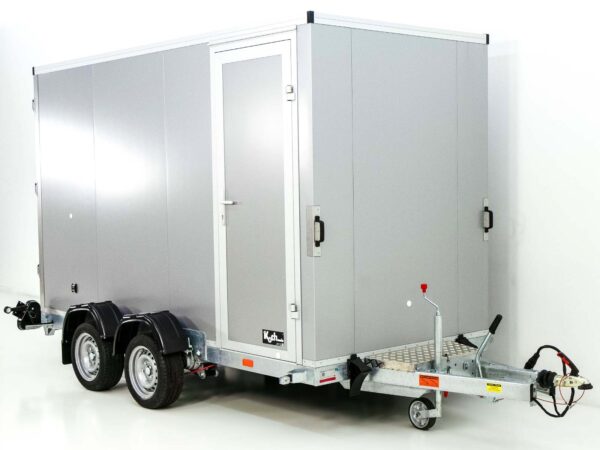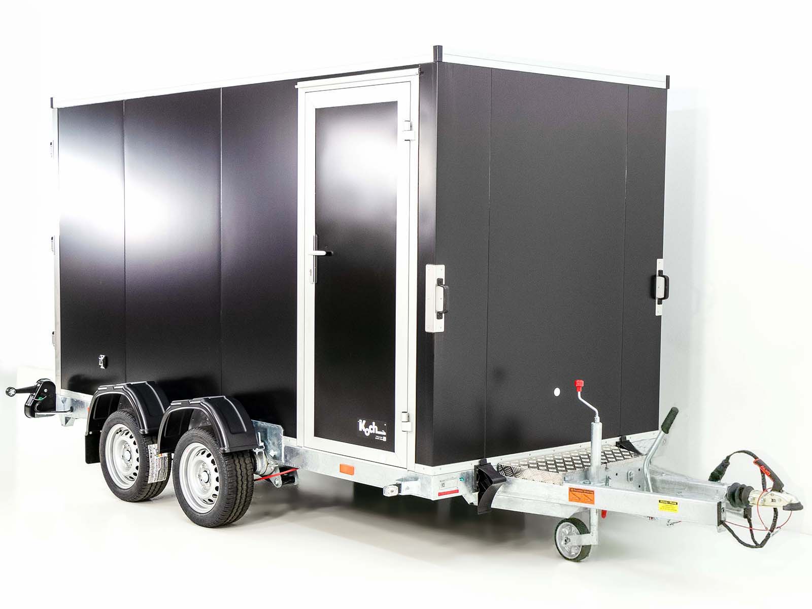 Vezeko Koffer-Absenkanhänger 157x344cm Höhe: 210cm 2,7t | Tür | E-Pumpe | Schwarz-Neu