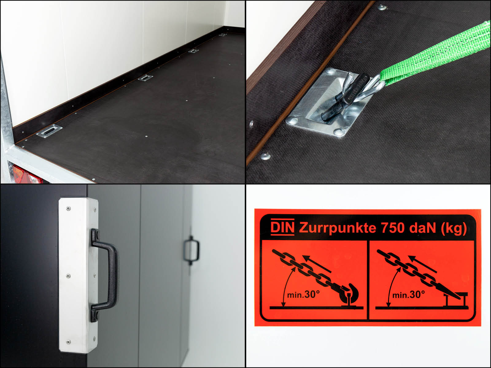 • Beidseitige Verzurrschienen und 8 Verzurrösen im Boden