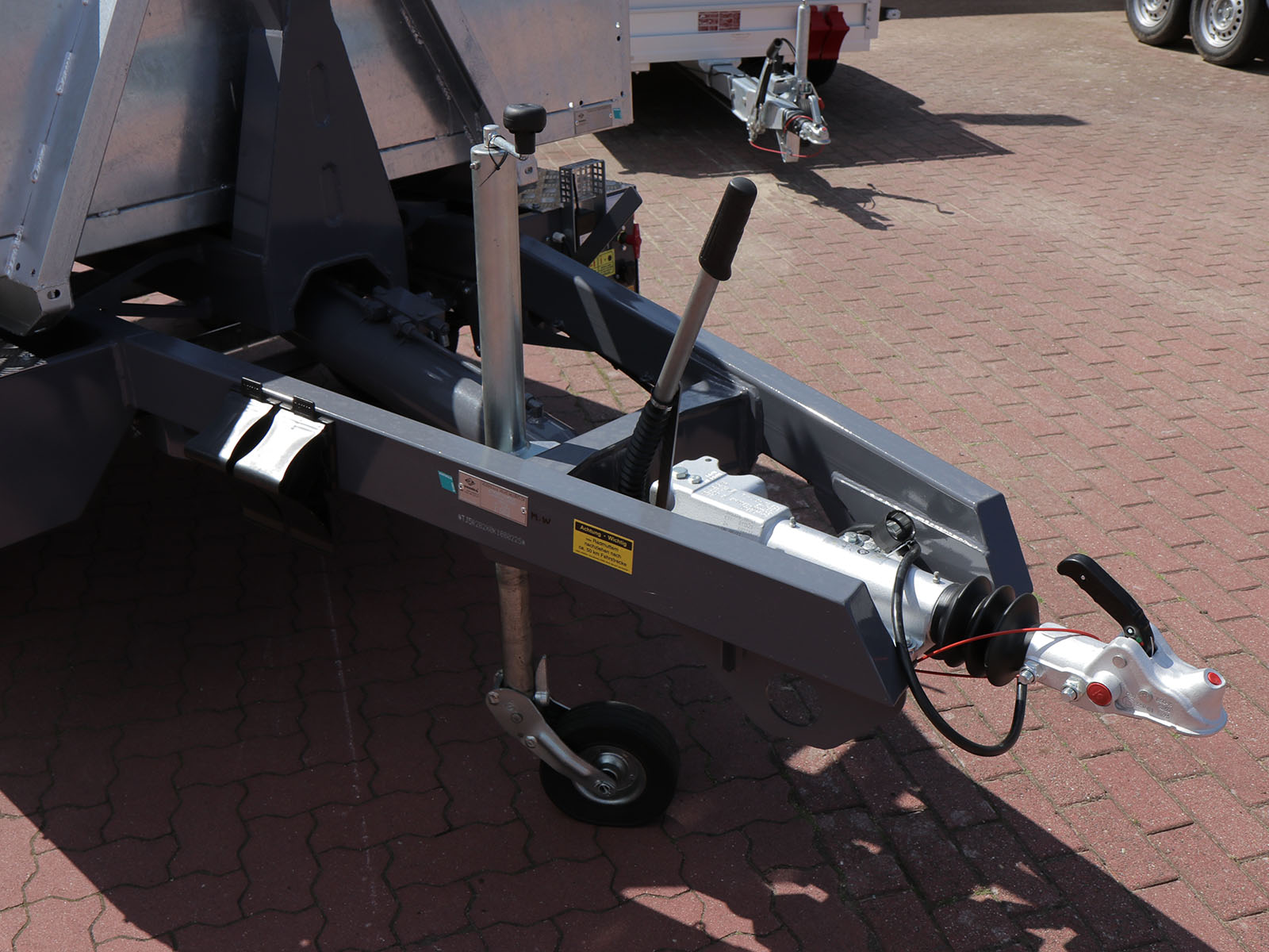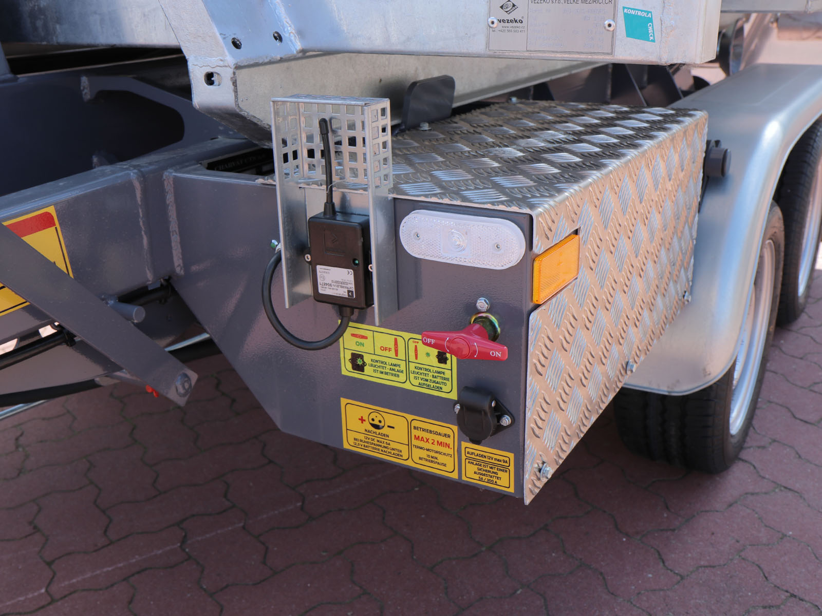 Der Vezeko KONOS Abroll-Muldenkipper 3,5t bietet eine vielseitige Lösung für den Transport von Materialien und Abfall. Ausgestattet mit einem robusten Hakengerät und einer 40 cm hohen Kippmulde eignet sich dieser Anhänger ideal für den Einsatz in Bau- und Entsorgungsbereichen. Die Bedienung erfolgt bequem über eine Funkfernbedienung.
