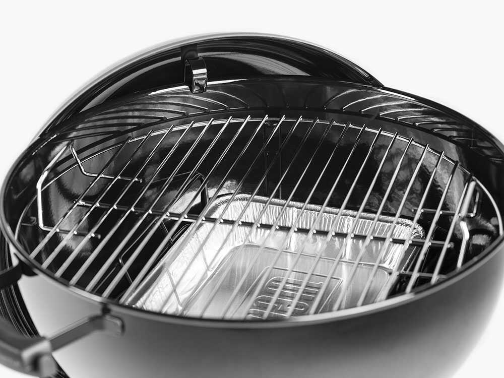 Der verchromte Stahlgrill kann auch schwerere Braten tragen, ohne sich zu verformen, und hat einen Durchmesser von nicht weniger als 57 cm, was die Zubereitung von Mahlzeiten auch für größere Gruppen ermöglicht.