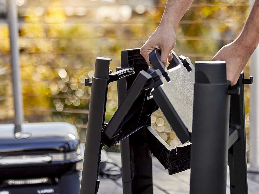 - Kompakte Struktur: Leichter Grill mit integriertem Klappständer.