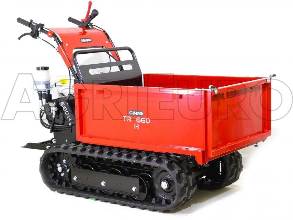 Der robuste Stahlrahmen und das Getriebe mit 2 Vorwärtsgängen und 2 Rückwärtsgängen macht den Raupentransporter besonders vielseitig und leistungsfähig.
