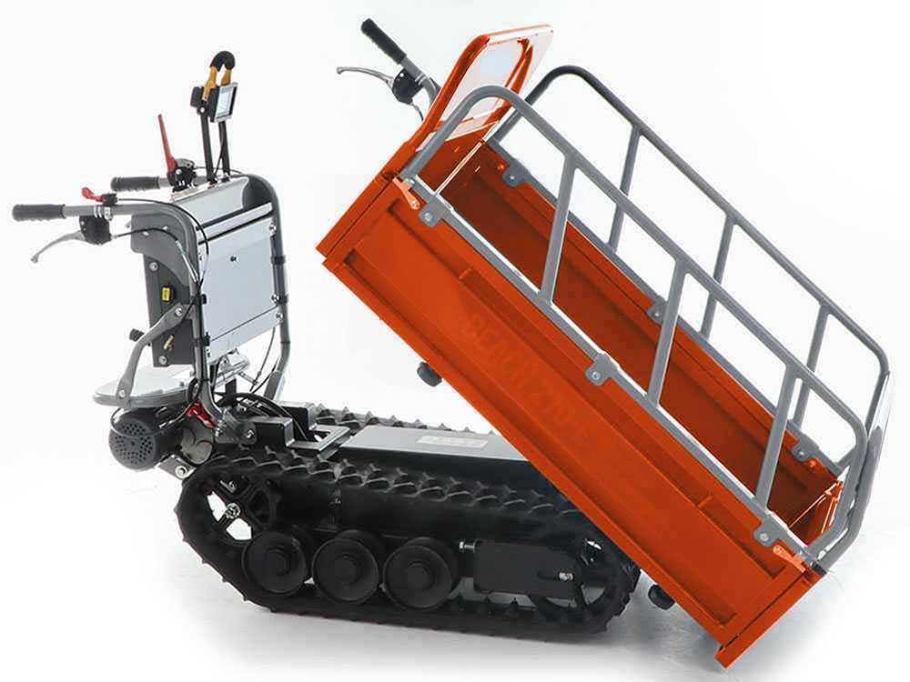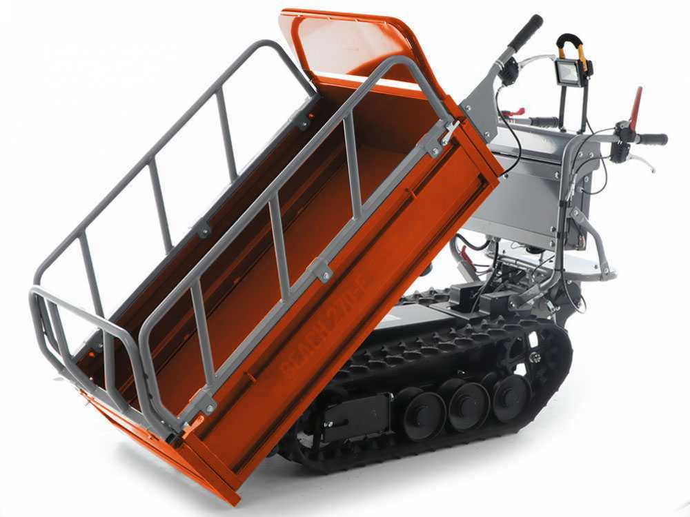 Der batteriebetriebene Elektromotor ermöglicht dank der geringen Geräuschentwicklung und der Abwesenheit von schädlichen Abgasen den Einsatz der Maschinen zum Transport auch in geschlossenen Räumen wie z.B. Gewächshäusern. Dank des Raupenantriebs und des bürstenlosen Motors, ist diese Motor-Schubkarre in der Lage, Lasten von 450 kg auch an Hängen zu transportieren, was sie zu einem unentbehrlichen Hilfsmittel für alle Arten von Transporten (Holz, Beton, Ziegelsteine, Schutt, Schutt usw.) macht.